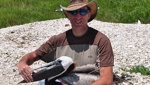 Patrick Jodice with Brown Pelican