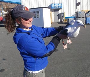 Heidi Trudell examine birds killed by Bird Strike