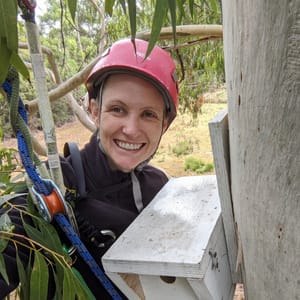 Catherine Young inspecting nest boxes